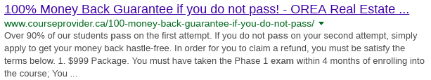 In order to help all these realtors in training, tons of businesses have popped up all over Ontario to prep the salespeople for tests. Many of them actually guarantee a pass or your money back.