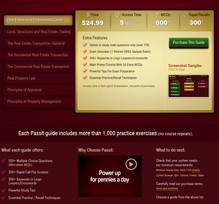 Then there is the OREA endorsed study program called Pass-It. You would think that if an organization was truly out to help consumers (and not its constituents – the realtors) by testing and ensuring good quality of realtors were serving consumers, it would not basically have realtors pay a mere $25 for access to each courses’ crypt sheet (more or less).